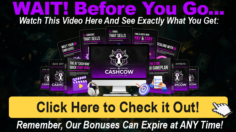 All You Need to do is head on over to AI CashCow from the link below and when you snap up that AMAZING offer from our link we'll also throw in EVERYTHING You See on This Page Too!