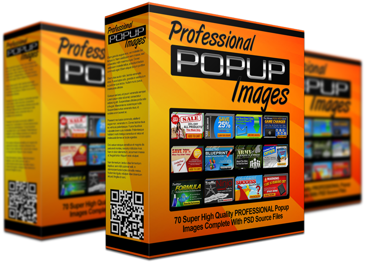 You get 70 Super High Quality PROFESSIONAL popup images that we have created and we're going to give you them ALL, complete with PSD source files, so you can edit them until your heart's content!