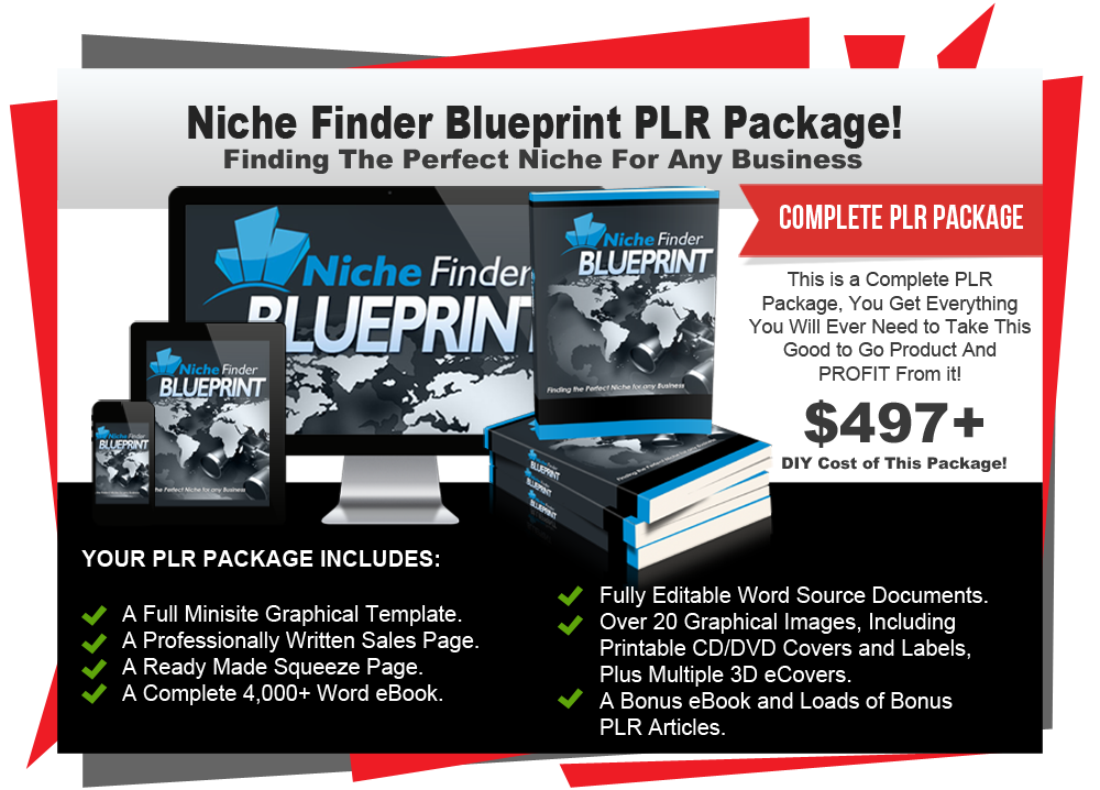 In this PLR package titled 'Niche Finder Blueprint' you will receive PLR rights to a complete 4,000 word eBook, a professionally written ready made Sales Page, a custom Squeeze Page and all the eCover graphics you could possibly need to make this a success. It also makes a great list building bonus offering for any of your niche products!