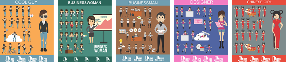 This is a collection of loads of Super High Quality cartoon characters that you can manipulate to meet your own needs. These are in transparent PNG format.