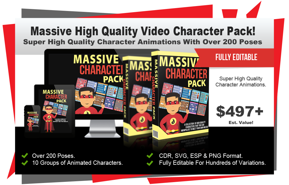 This is a MASSIVE package of 10 Groups of Super High Quality Character Animations. There are over 200 poses included in these animations which consist of multiple various characters in CDR, SVG, ESP & PNG format. These super high quality graphics are all really simple to edit/adapt to your own needs. See below for some screenshots:
