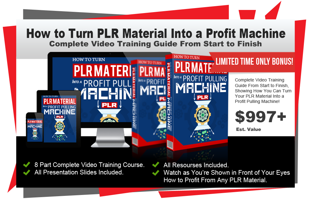 This MEGA High Value Bonus is the ULTIMATE video training course for turning your PLR Material into Profit Pulling Machines! Simply watch as you’re shown exactly how to do this in EIGHT High Quality video training sessions. This takes you from scratch to having your own product online making income, all using PLR Material. We cannot stress how amazing this training really is.