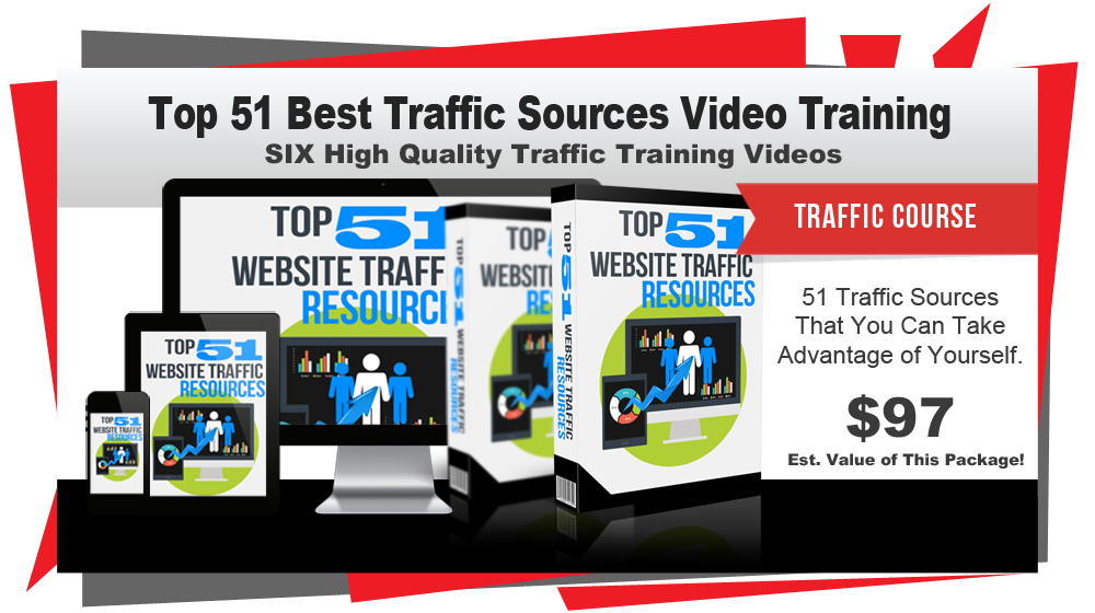 This is SIX high quality videos that explain how you can discover 51 of the best traffic sources that major brands and super affiliates use to flood their sites with tens of millions of visitors every single month. You'll learn how you can very quickly take advantage of these 51 traffic sources so you can take advantage of them yourself.