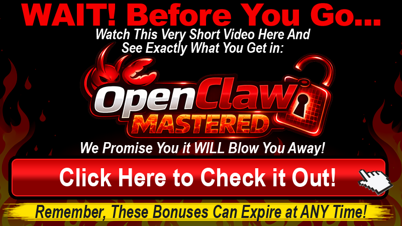 All You Need to do is head on over to OpenClaw Mastered from the link below and when you snap up that AMAZING offer from our link we'll also throw in EVERYTHING You See on This Page Too!